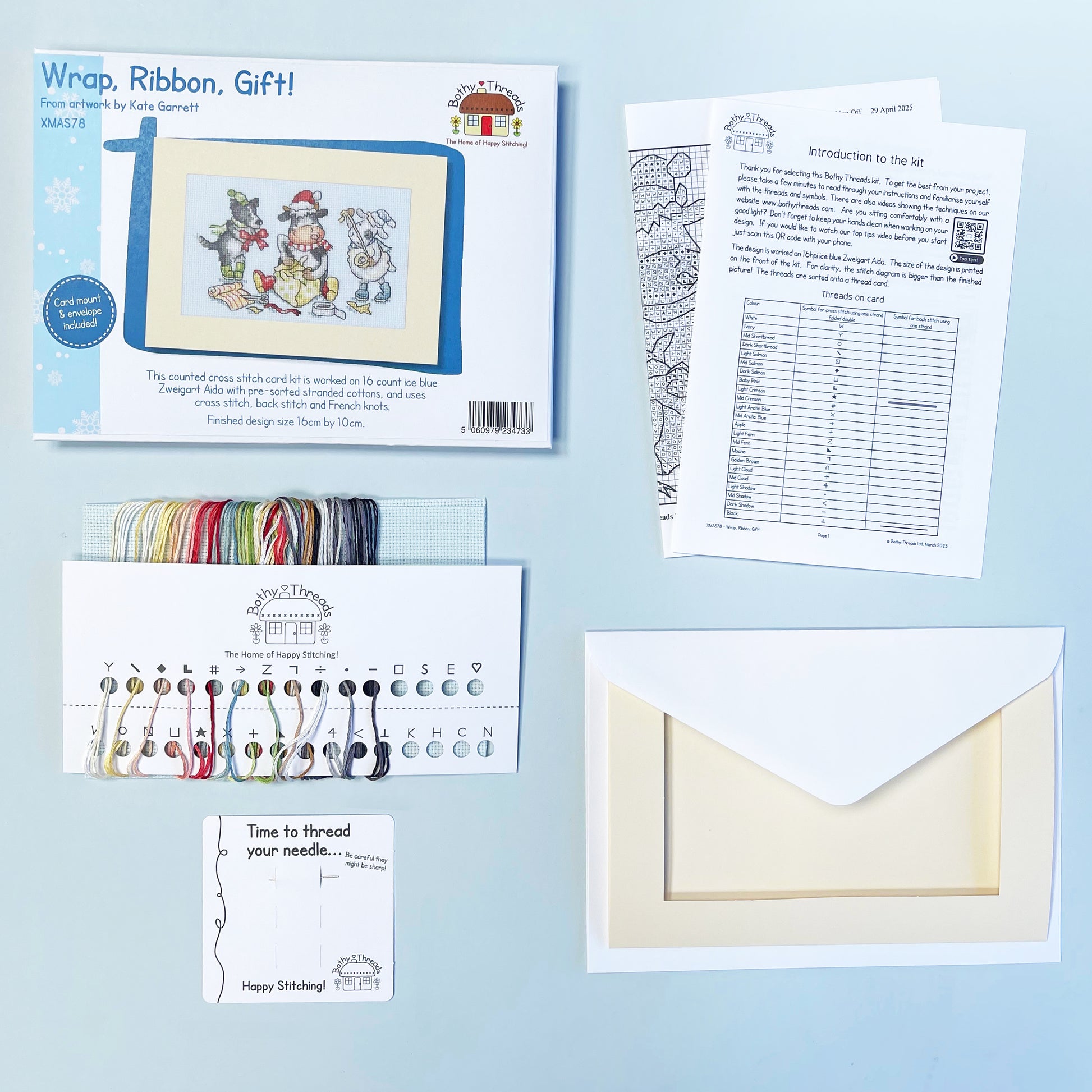 Christmas Card - Wrap, Ribbon, Gift! - Bothy Threads Cross Stitch Kit XMAS78