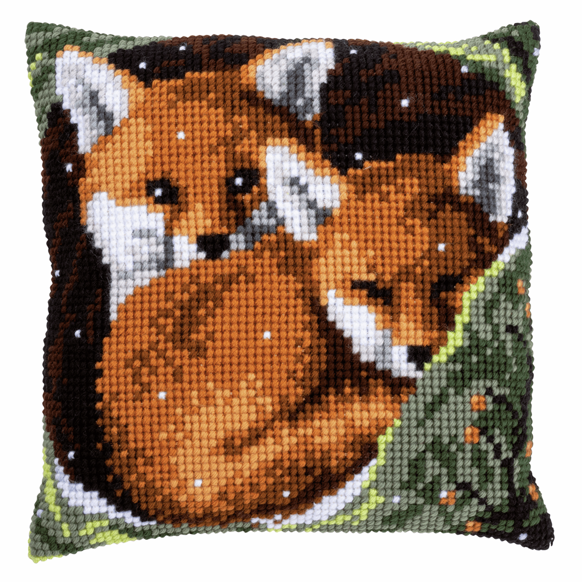 Foxes Chunky Cross Stitch Cushion Front Kit 40x40 Vervaco Printed Canvas & Yarns PN-0162175